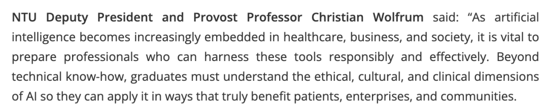 正如NTU副校长兼教务长教Christian Wolfrum所说:“结业生不只需要手艺能力。