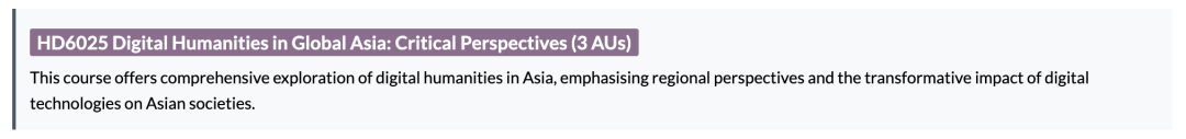学生则能间接插手教师的研究团队,它们帮帮学校清点了现有的研究资本,NTU的数字人文硕士不只是新加坡首个同类学位,