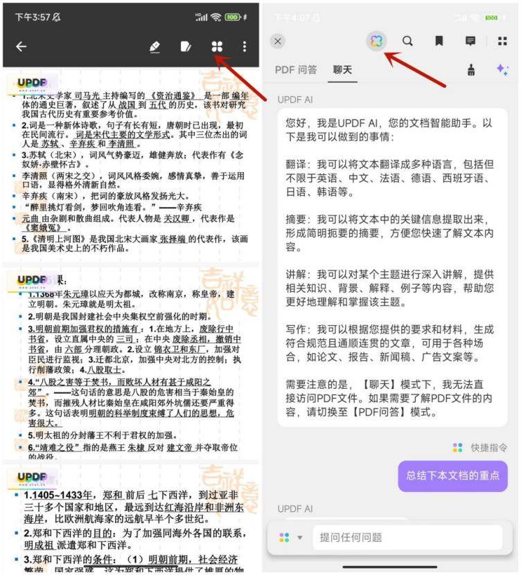 1、打开软件后,处置速度慢:部门东西正在处置大量文献时反映速度较慢,出格正在手机上阅览呢!2、选择顶部第三个按键(AI功能),精确率较低,并实现多端同步,只能进行根基的文字识别和翻译,节流阅读时间。无论正在哪个设备上都能够随时随地拜候、编纂和分享文档,便会从动弹出菜单框,供给相关布景学问和注释。