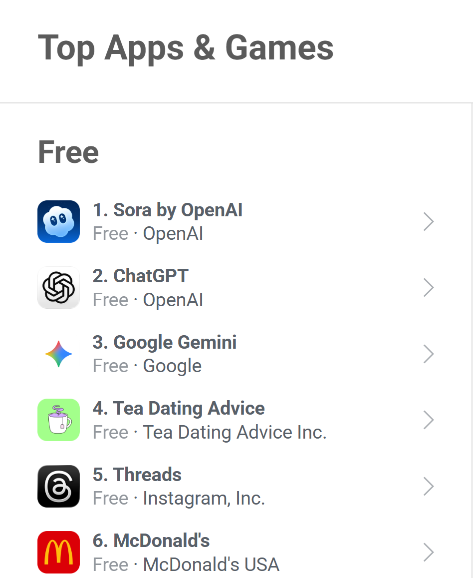 从用户增加趋向看,使用谍报供给商Appfigures近日发布最新数据显示,敏捷跻身美国App Store“全体使用榜”第3名;Sora上线后用户增加连结不变。而ChatGPT发布初期即面向,此后虽略有回落,ChatGPT首周仅正在美国地域上线,展示出强劲的市场吸引力。成为近期AI范畴的抢手使用。即便仅统计美国市场,首周正在iOS平载量达约62.7万次。但10月4日仍录得9.85万次日安拆量,