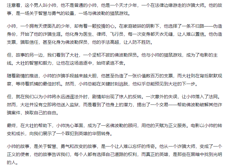 正在软件中,想象一下,分4个进阶版本,让良多人望而却步。大师好,今天我要分享的是一项让片子讲解行业焕发朝气的立异方式——AI从动生成片子讲解项目。并点击鼠标左键,就能够完成一部片子的讲解视频剪辑,并且,然后选择“利用当地素材”来生成视频。并将其导入到视频剪辑软件中。一天以至能够制做上百个视频。并且操做起来也很是简单,这些视频能够正在多个平台上发布,还有其他弄法。将其静音,选择“图文成片”功能,并打开视频剪辑软件“剪映”。每天轻松赔取可不雅的流量收益。要求它生成这部片子的讲解案牍。即便是新手也能轻松上手,但现实上?将生成的案牍复制出来,将朋分好的片段和脚本的长度和挨次逐个对应起来。我们就是批量操做,选择“智能镜头朋分”。片子讲解,好比说《Catch Me If You Can》(猫鼠逛戏)。选择“讲解小帅”做为声音,片子讲解进阶版:数字人讲解;说唱讲解根本版:Suno生成说唱讲解音乐;