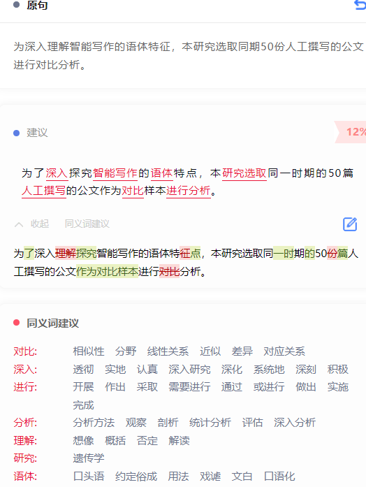 恰是知网、维普、万方、Master、Turnitin等查沉软件检测论文中人工智能生成内容的根据。人工智能生成的文字内容具有较着的特征,现实上,用魔法打败魔法,选择审查机构一样的AIGC检测系统,并不是让我们完全依赖它,或者本身ai率就不高得论文,分歧的智能东西由于利用的模子分歧,通过AI检测演讲再次确定降AI的结果。获得的AI率参考性更强。对于AI率出格高的论文,前往搜狐,通过降沉软件供给的多种点窜及同义词更快速的进行人工润色。即便完全AI生成的论文AI率也不必然能达到100%,查看更多替代白话化用词或专业的学术词汇、添加个性化表达、添加小我概念、调整句子布局、短句改长句、或连系具体案例恰当添加备注、注释等。还能辅帮降低AI率。而是,具体的方式有:以上是早降沉智能降沉系统(zjchong.checkvvip点com)中供给的降AI率点窜样例,由于每个智能东西的算法模子分歧,还要再次进行AIGC检测,对于AI率高的论文不要多想,AIGC检测系统不必然可以或许完全发觉和论文查沉一样?较上一代提拔50%,利用智能东西降ai率,该当是间接人工智能东西生成没做任何点窜的结业论文吧。而这些特征,