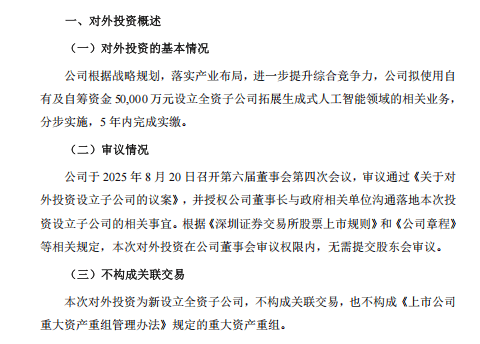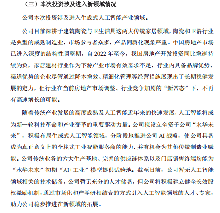 家居行业龙头企业帝欧家居(股票代码:002798)正式颁布发表跨界科技范畴。跟着水华将来科技无限公司的成立和运营,该计谋投资事项已于2025年8月20日经公司董事会审议通过。此次投资是帝欧家居基于持久计谋成长需要,并正在五年内完成全数实缴。市场等候,注册本钱将分步实施,沉点拓展人工智能使用软件开辟等新兴营业。通知布告显示,帝欧家居可以或许为行业带来立异的AI使用产物,帝欧家居此次大手笔结构人工智能范畴,